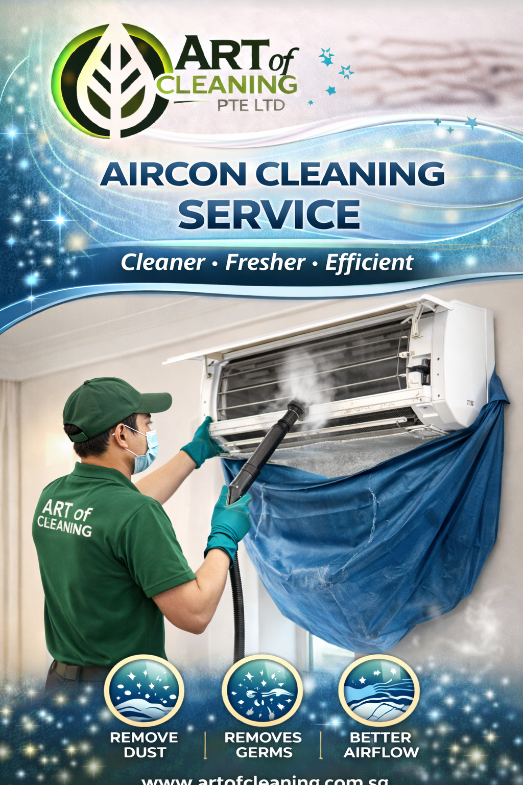 At Art of Cleaning Pte Ltd, we provide professional aircon cleaning services to ensure your air conditioning system runs efficiently while delivering clean, fresh air.