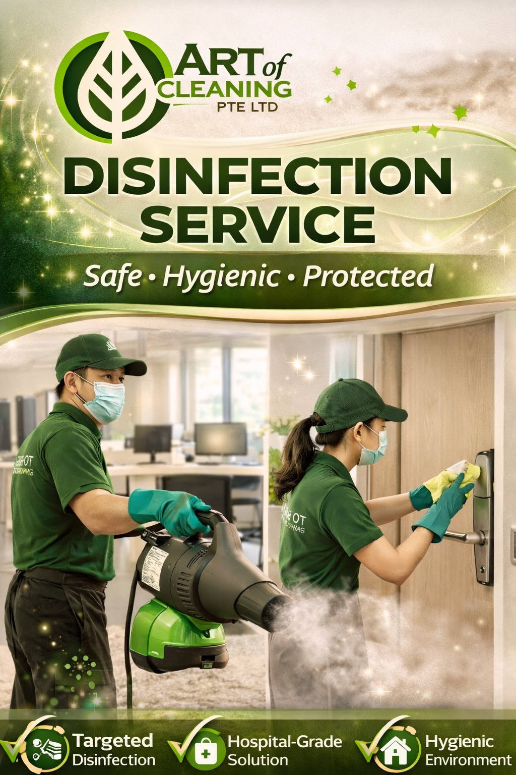 At Art of Cleaning Pte Ltd, we provide professional disinfection cleaning services to help maintain a safe, hygienic, and healthy environment for homes, offices, and commercial spaces across Singapore.