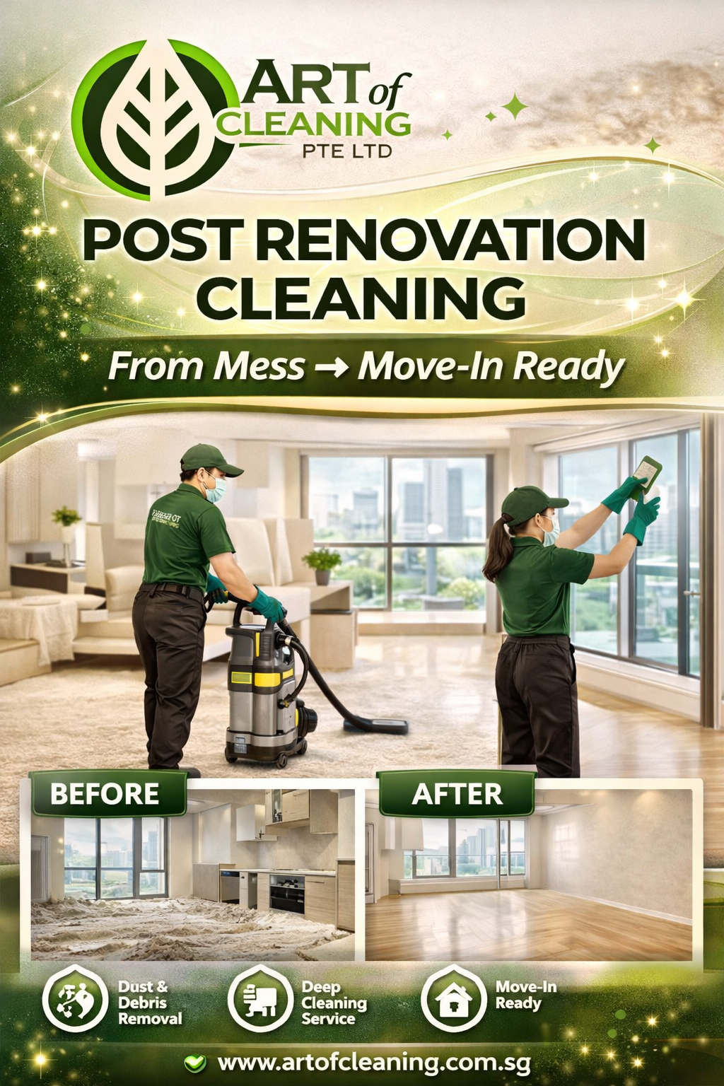 At Art of Cleaning Pte Ltd, we provide thorough post-renovation cleaning services to transform your newly renovated space into a clean, safe, and move-in ready environment.