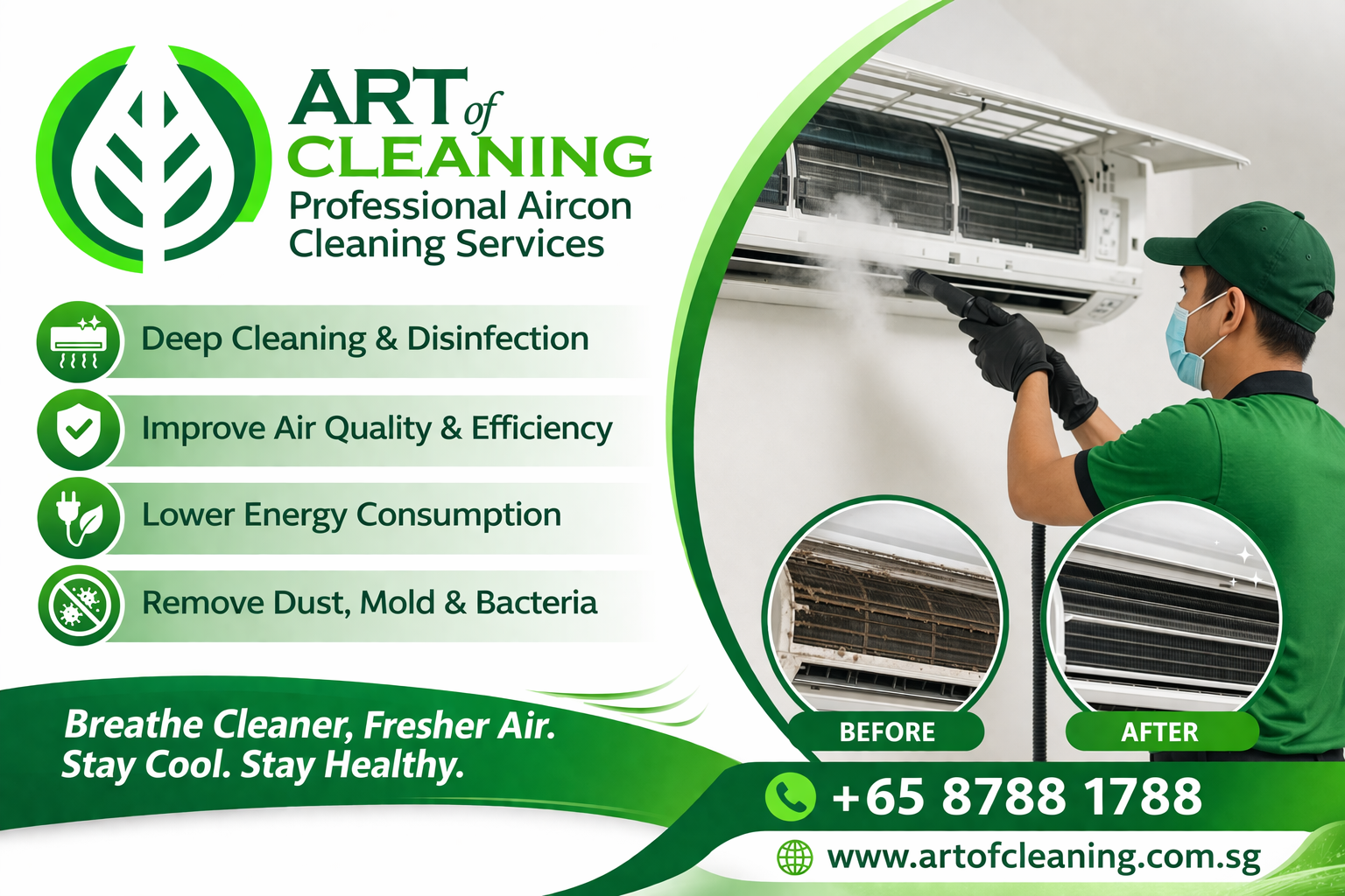 Keep your air conditioning system running efficiently with Art of Cleaning’s professional aircon cleaning services.
