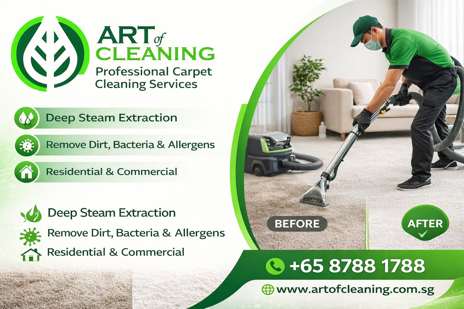 Restore the freshness of your carpets with Art of Cleaning’s professional carpet cleaning services.