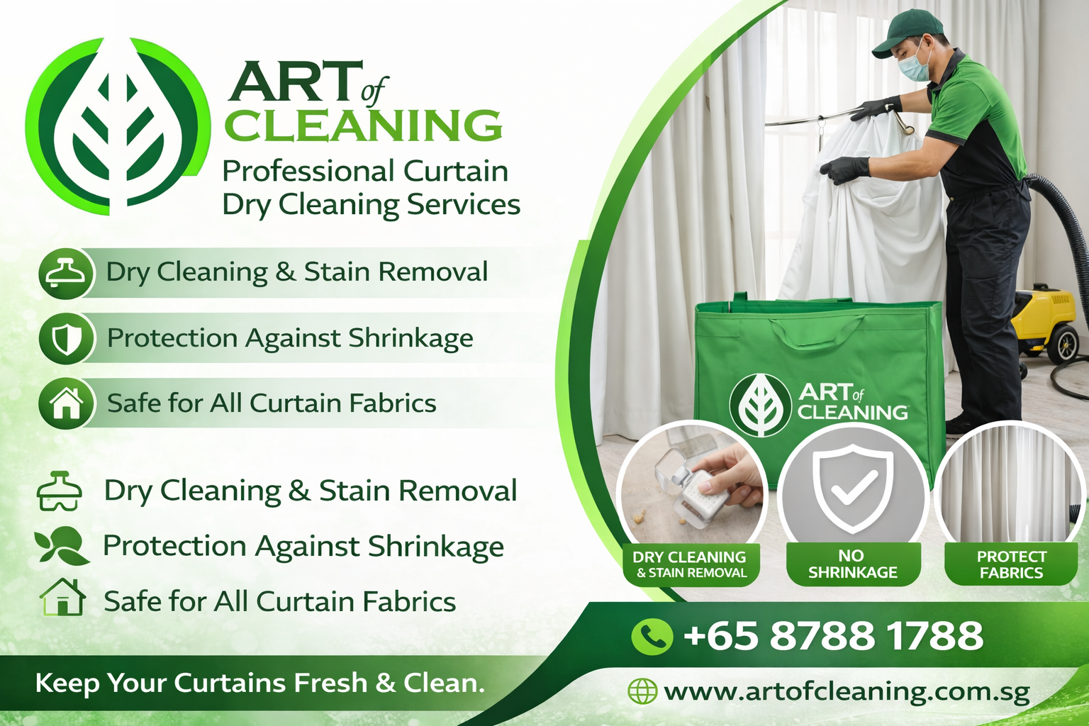 Keep your curtains looking clean and elegant with Art of Cleaning’s professional curtain dry cleaning services.