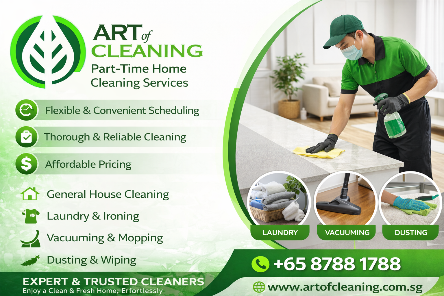 Keep your home clean and comfortable without the hassle with Art of Cleaning’s part-time house cleaning services.