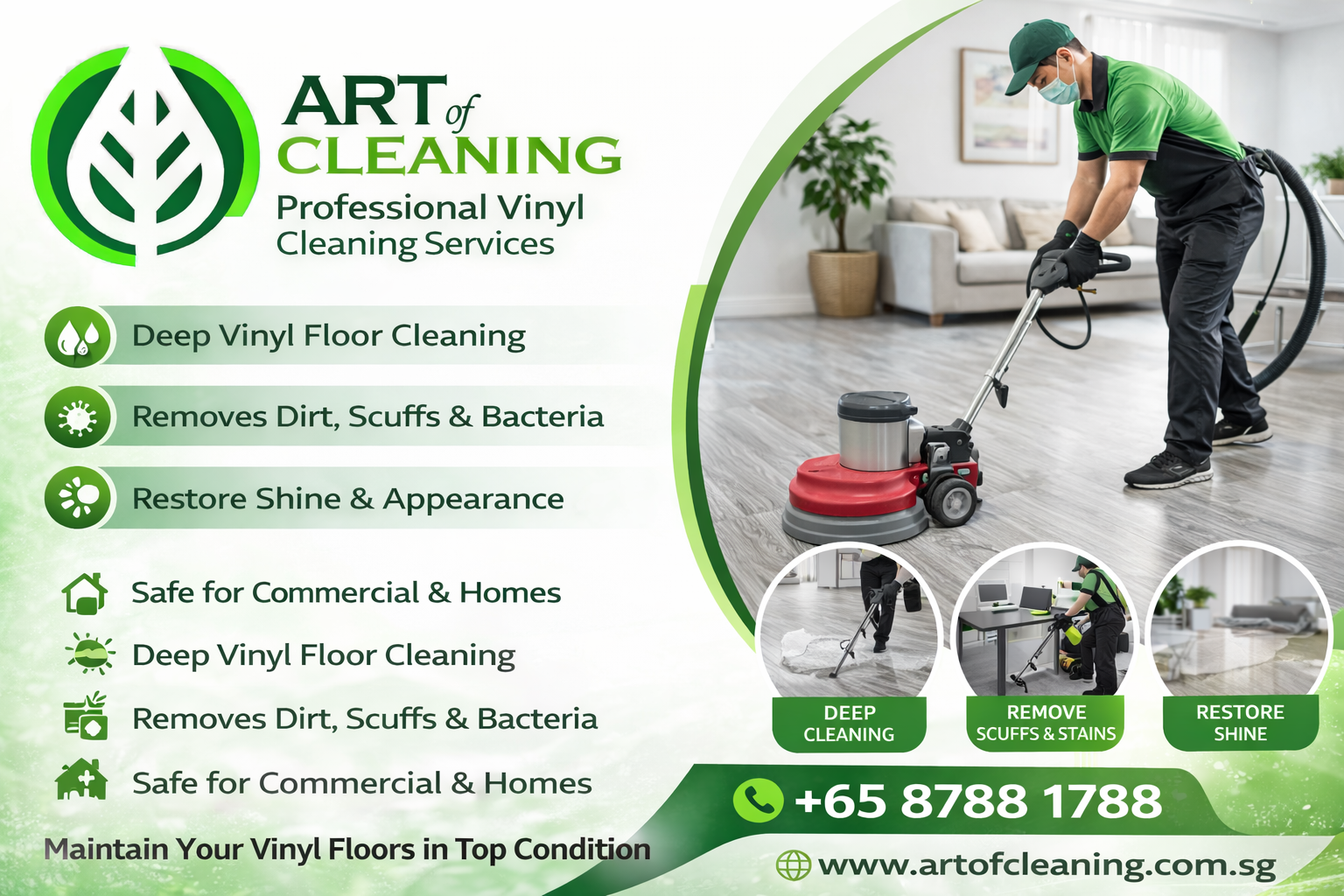 Restore the shine and cleanliness of your vinyl floors with Art of Cleaning’s professional vinyl floor cleaning services.